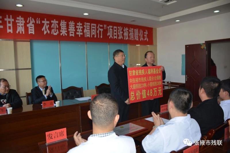 为改善贫困肢体残疾人身体状况,提高他们的生活质量, 开展2019年“衣恋集善幸福同行”项目,并于11月20日在张掖市残联举行项目捐赠仪式。